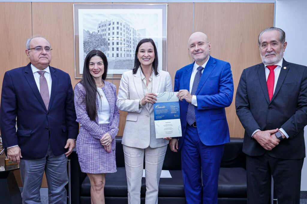 Na tarde da segunda (19), a presidente e a vice-presidente da Ordem dos Advogados do Brasil – Seccional Pernambuco (OAB-PE), Ingrid Zanella e Schamkypou Bezerra, respectivamente, reuniram-se com o presidente eleito do Tribunal de Justiça de Pernambuco (TJPE) para o biênio 2026/2028, desembargador Francisco Bandeira de Mello. O encontro foi realizado na sede da OAB-PE, localizada no bairro de Santo Antônio, área central do Recife. Ao lado deles, o 2º vice-presidente eleito, desembargador Fausto Campos; e o corregedor-geral de justiça eleito, desembargador Alexandre Assunção.