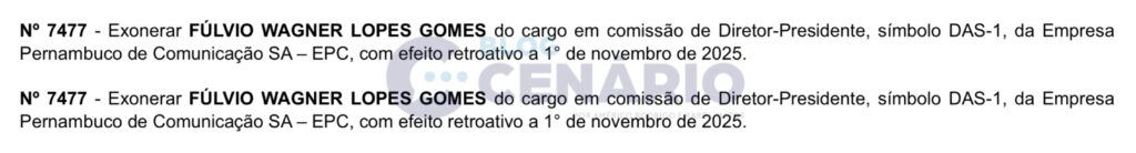 O Diário Oficial deste sábado (15) trouxe a oficialização do que já vinha sendo especulado há alguns dias: a saída de Fúlvio Wagner da presidência da Empresa Pernambuco de Comunicação, para assumir uma função estratégica na comunicação institucional do Estado.