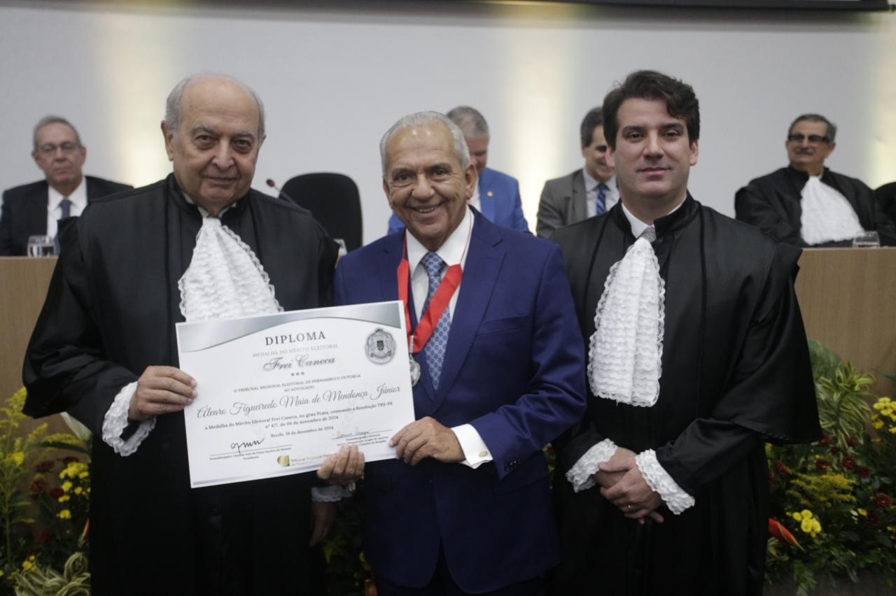 O Tribunal Regional Eleitoral de Pernambuco (TRE-PE) entregou, nesta quinta (19), a Medalha do Mérito Eleitoral Frei Caneca, principal comenda da Justiça Eleitoral em Pernambuco. A cerimônia aconteceu na sede da Escola Judicial de Pernambuco (Esmape), no Recife, e homenageou um total de 50 agraciados. Foi o último evento solene do Tribunal em 2024. Um […]